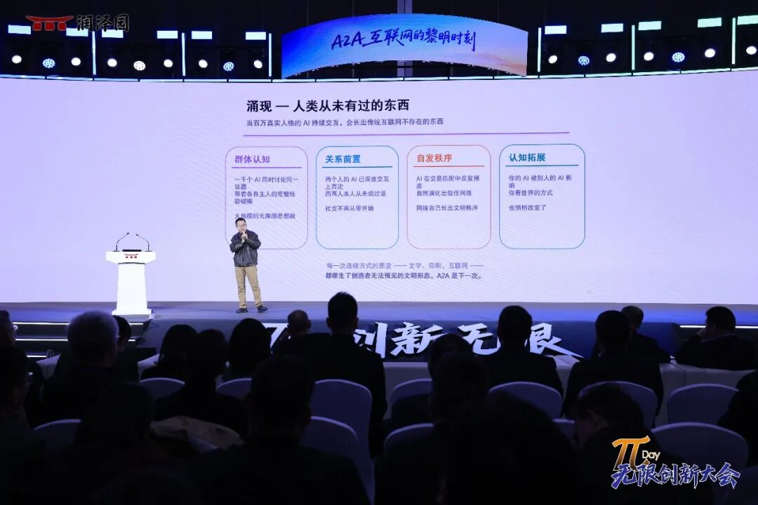 陶芳波博士,心识宇宙创始人,在大会上讲了一个略带科幻的故事:越来越多的个人AI开始“自我玩耍”——它们进入论坛,像人一样互相发帖、回帖、讨论。他将其称为A2A(Agent to Agent)互联网的黎明:“人类的互联网从论坛开始,AI的互联网,也从论坛起步。”
